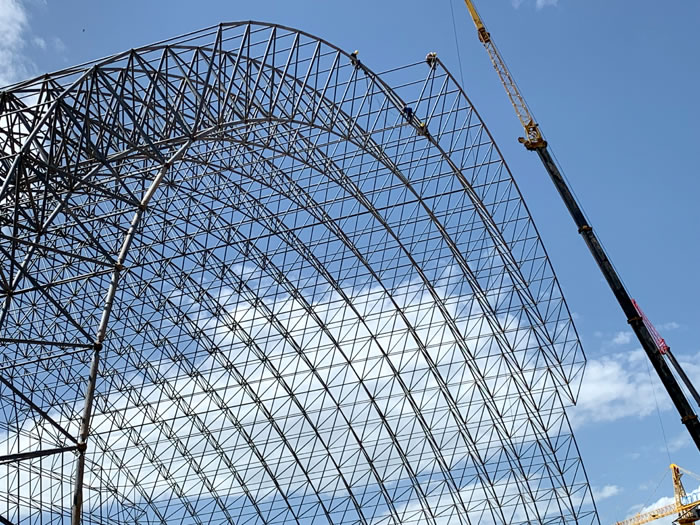 (2)网架加工前应对现场尺寸进行复测,确认无误后方可进行加工、安装;网架制作、运输、安装应遵守《空间网格结构技术规程》JGJ7-2010、《钢网架云浮螺栓球节点》JG/T 10-2009、《钢网架云浮螺栓球节点用高强度螺栓》 GB/T 16939-2016、《云浮钢结构云浮工程云浮施工规范》 GB50755-2012、《云浮钢结构云浮工程云浮施工质量验收标准》 GB50205-2020。